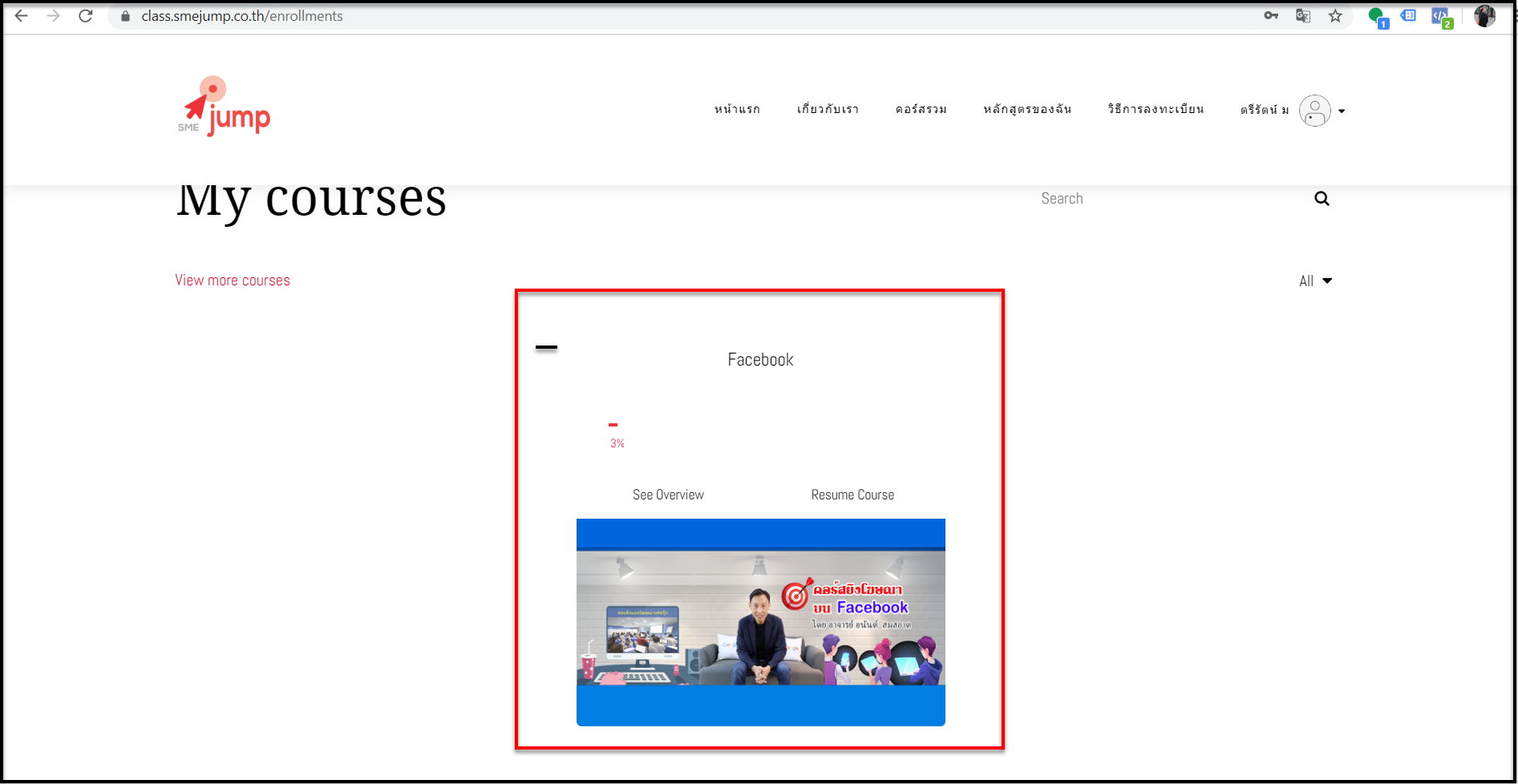 3. จะเจอหน้าคอร์สที่ทางเราทำการจ่ายตังให้เรียบร้อยแล้ว คลิกเข้า